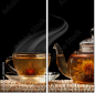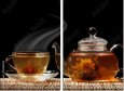 Zweiteiliges Leinwandbild - Diptychon: Glass teapot and a cup of green tea on a black background