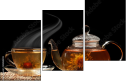 Dreiteiliges Leinwandbild - Triptychon: Glass teapot and a cup of green tea on a black background