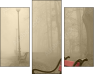 Dreiteiliges Leinwandbild - Triptychon: red bench in the fog