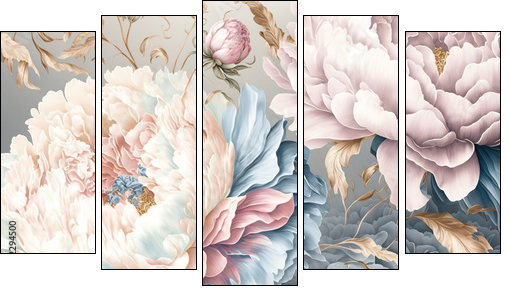 Fünfteiliges Leinwandbild - Pentaptychon: Beautiful peonies, abstract floral design in pastel colors for prints, postcards or wallpaper