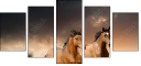 Fünfteiliges Leinwandbild - Pentaptychon: horses in sunset