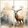 Zweiteiliges Leinwandbild - Diptychon: Masterful Brushstrokes: Juxtaposed Elk Painting in Minimalist Nature Study