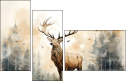 Dreiteiliges Leinwandbild - Triptychon: Masterful Brushstrokes: Juxtaposed Elk Painting in Minimalist Nature Study